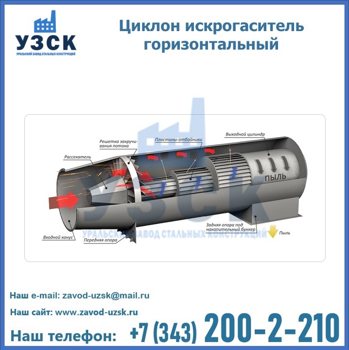 Горизонтальные циклоны-искрогасители ЦГ поставляются в Владивостоке в сборке или же транспортными единицами для последующей сборки, если предназначены для работы с большими объемами.